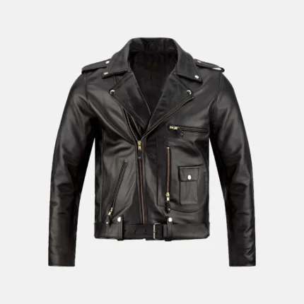Grayson Men’s Black Biker Leather Jacket with Asymmetrical Zipper