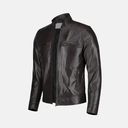Jaxon Men’s Dark Brown Leather Cafe Racer Motorcycle Jacket