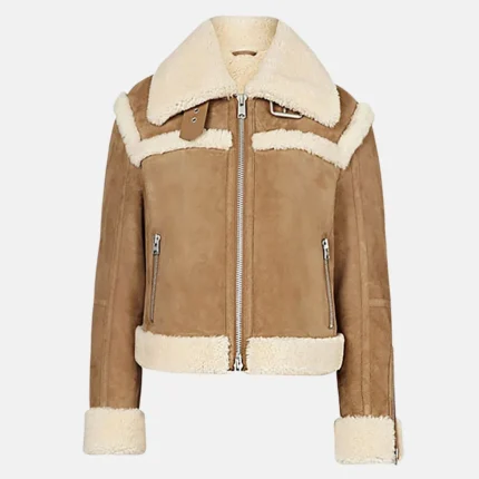 Aria Women’s Brown Shearling Suede Aviator Jacket with Faux Fur