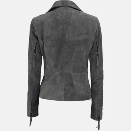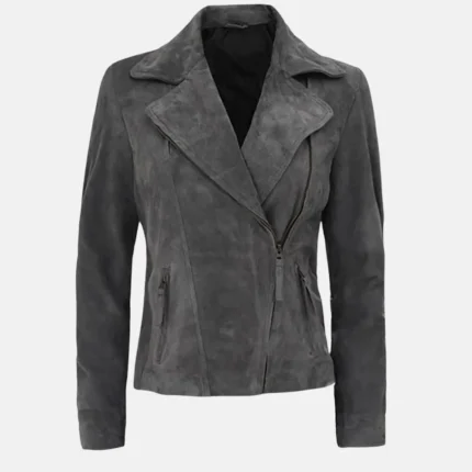 Scarlett Women’s Grey Suede Leather Biker Jacket with Asymmetrical Zip