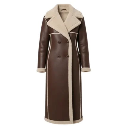 Gigi Hadid Shearling Brown Leather Trench Coat