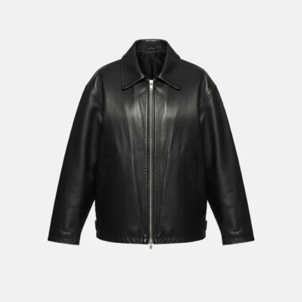 Hailey Bieber Black Oversized Bomber Leather Jacket