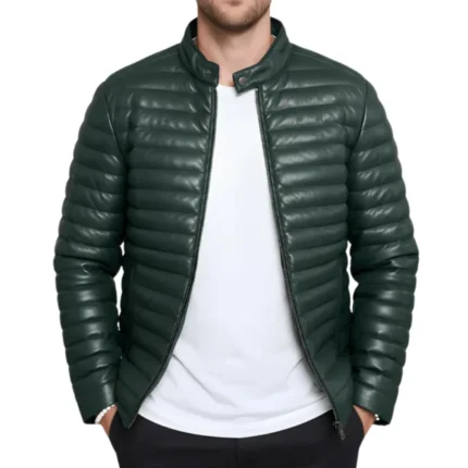 Havoc Men’s Green Leather Puffer Jacket