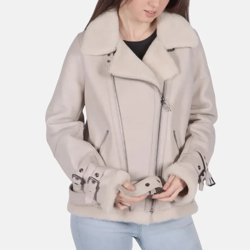 Mia Women’s Grey B-3 Bomber Leather Jacket for Winter Warmth