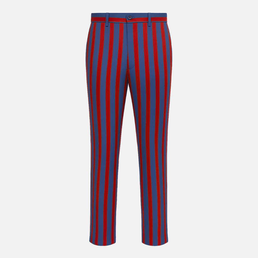 Made from premium suiting fabric, the Austin Powers Pinstripe Suit Costume delivers structure, comfort, and statement-making appeal. Its pink-and-blue striped pattern captures that unmistakable mod flair, while the lapel-style collar and buttoned front closure keep it sleek and timeless. Inside, the soft viscose lining ensures breathable comfort — because true style should always feel as good as it looks.