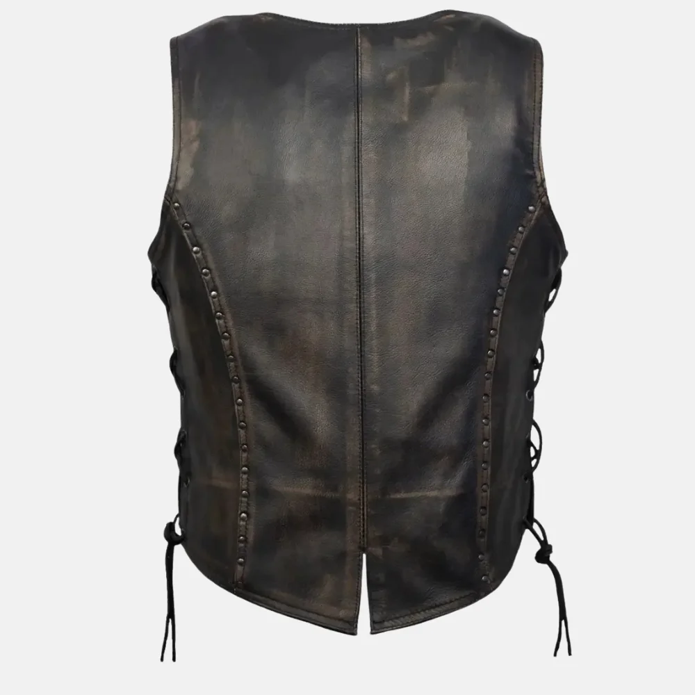 Buy Ella Women’s Studded Distressed Brown Leather Vest for Boho Style Now On Sale