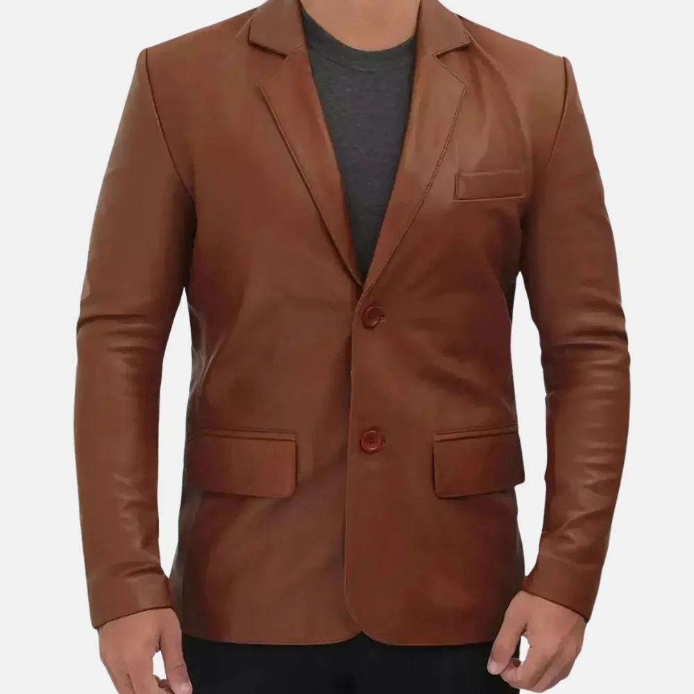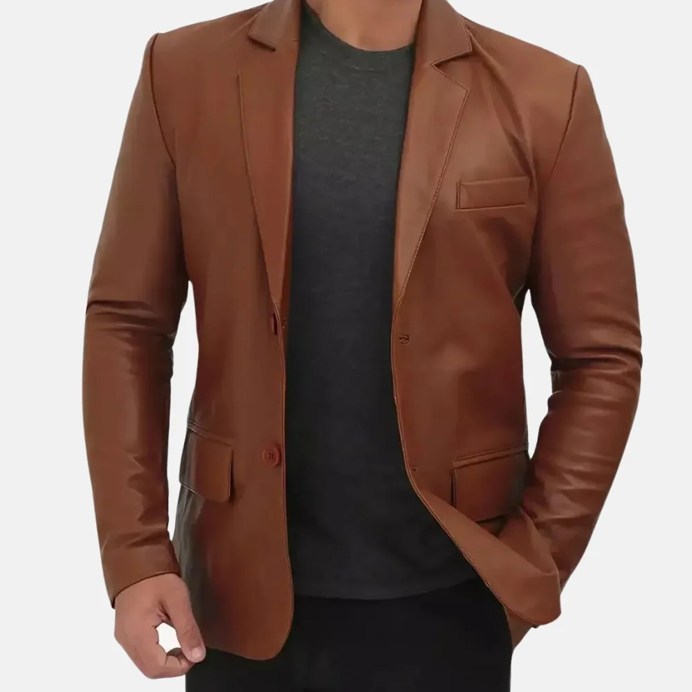 Elliot Men’s Brown Leather Blazer for Formal and Casual Wear