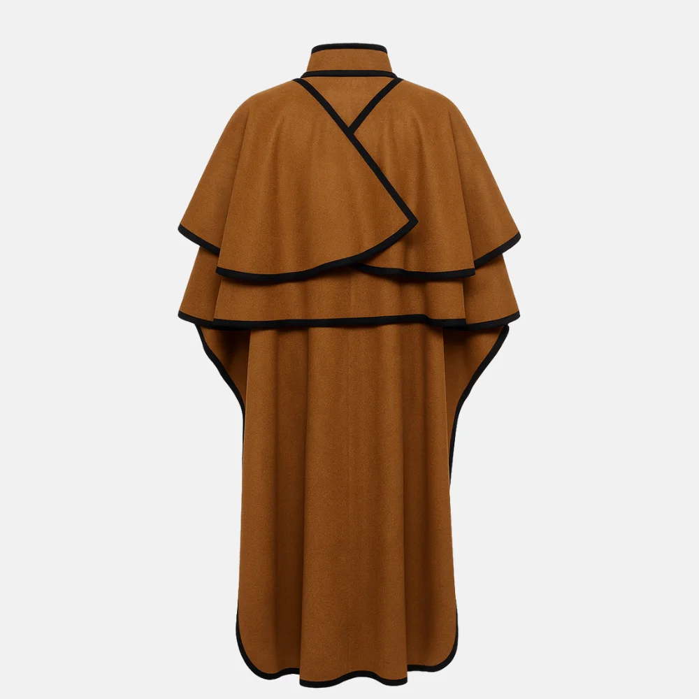 Caring for your cape coat is simple: dry clean only to preserve its structure and buttery softness. With proper care, it retains its rich color and refined shape for years, ensuring it becomes a lasting wardrobe icon. This isn’t just a fashion piece — it’s a future heirloom.