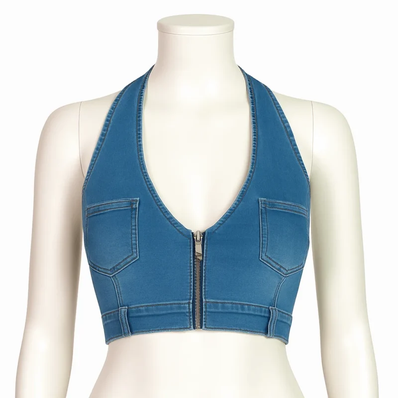 Euphoria Maddy Perez Denim Zip Front Crop Top
