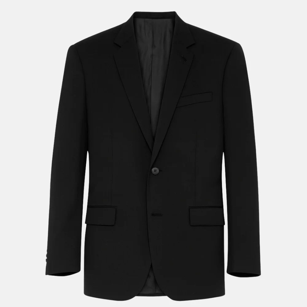 Durability meets design in every stitch. The suiting fabric is resistant to creasing and holds its shape, ensuring it looks fresh wear after wear. To maintain its rich black tone and clean finish, dry clean only and store in a cool, dry space. This piece is built to last — a timeless investment for the style-conscious individual.