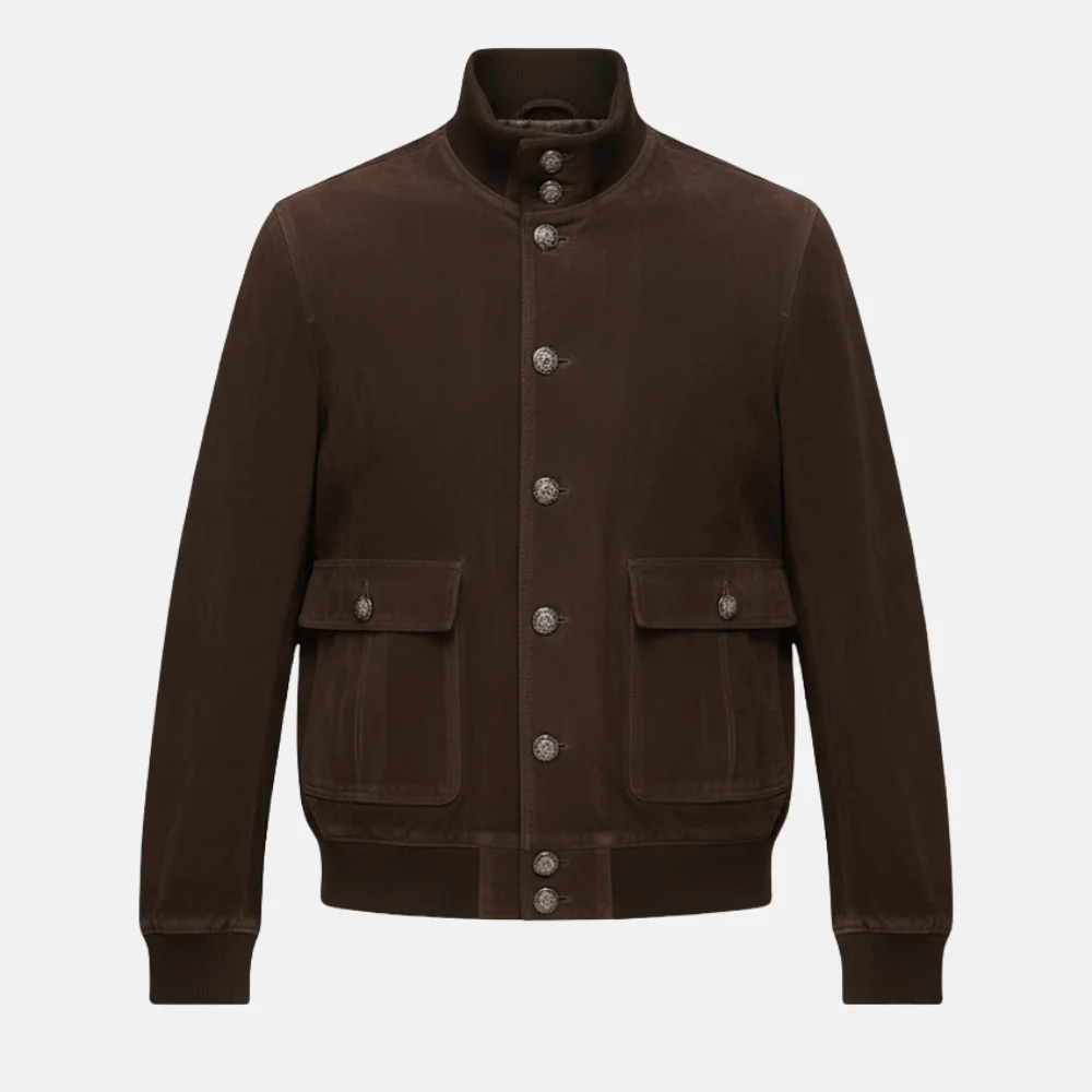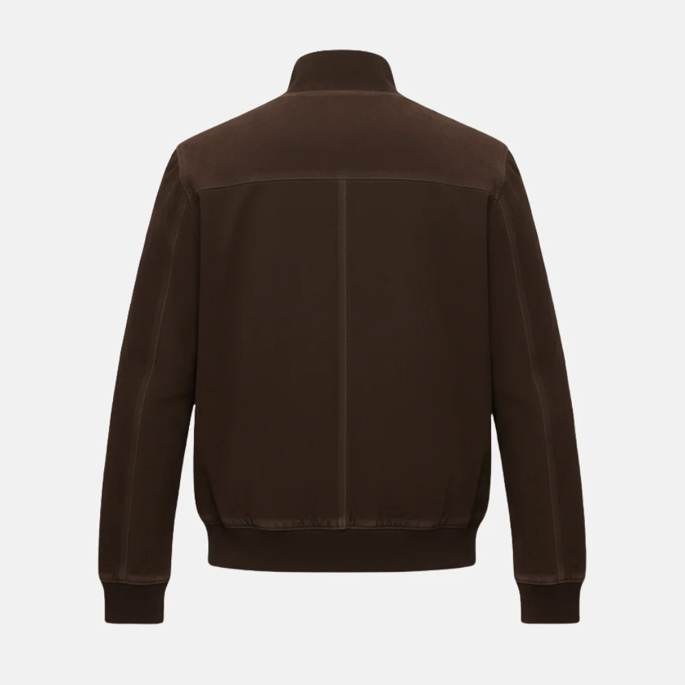 The supple suede hugs your frame without constricting movement, giving you that flawless tailored fit that feels custom-made. Its stand-up collar frames your neckline with masculine sharpness, while the button-up bomber silhouette adds that perfect balance between classic refinement and modern street sensibility. Whether paired with a white tee and denim or layered over a turtleneck and chinos, this jacket makes an effortless statement — every time you step out.