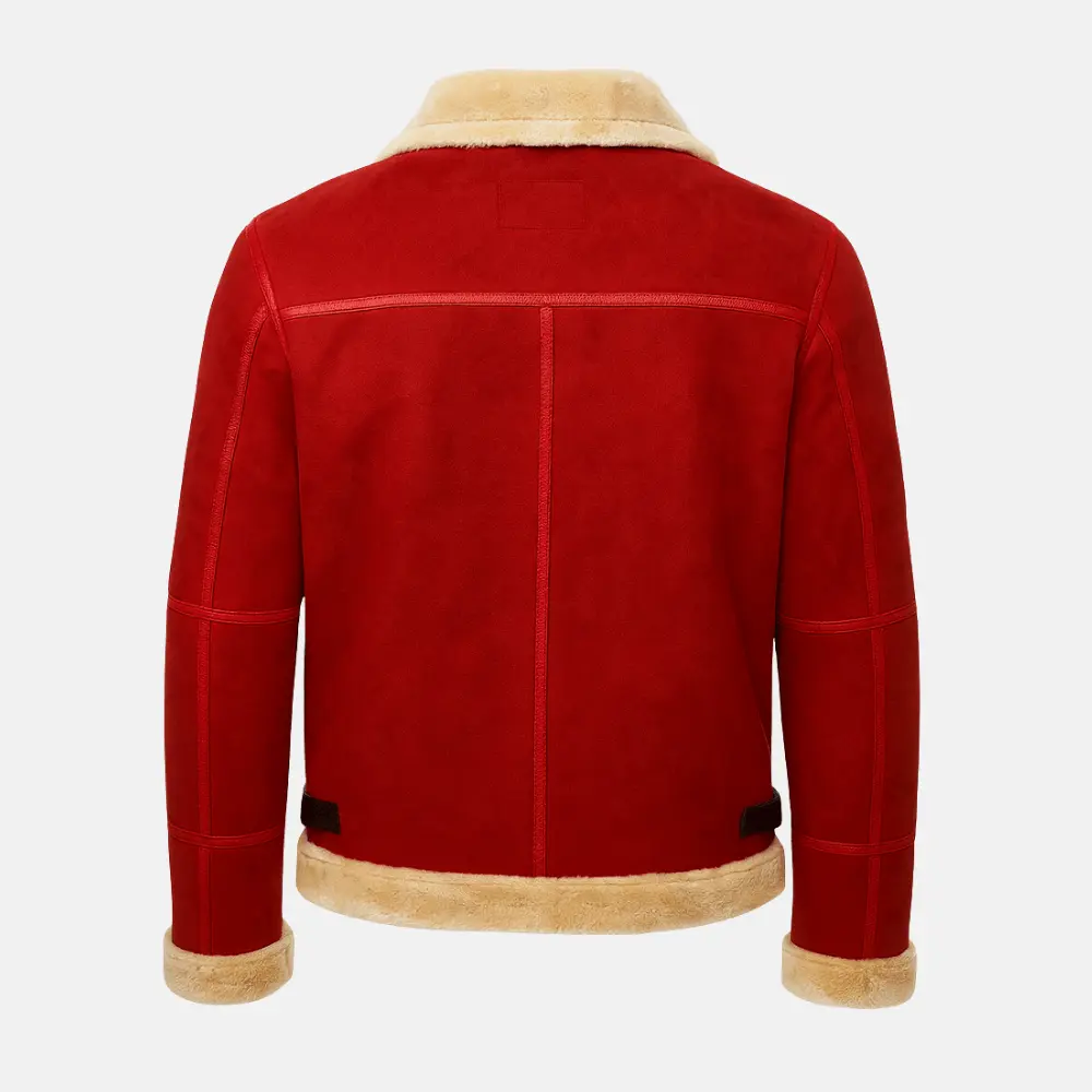 Crafted from premium shearling leather, this striking red jacket is built for both comfort and charisma. The regular fit drapes naturally on your frame, offering a tailored yet easygoing silhouette. A smooth front zipper closure ensures seamless wear, while soft fur cuffs and collar add an indulgent touch of warmth and sophistication. Whether you’re layering up for winter nights or styling for a night out, this jacket commands attention in every setting.