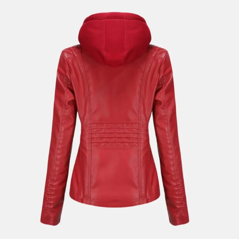 Emma Women’s Red Hooded Leather Jacket for Casual Fashion