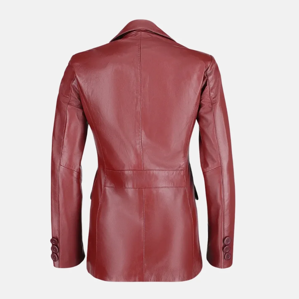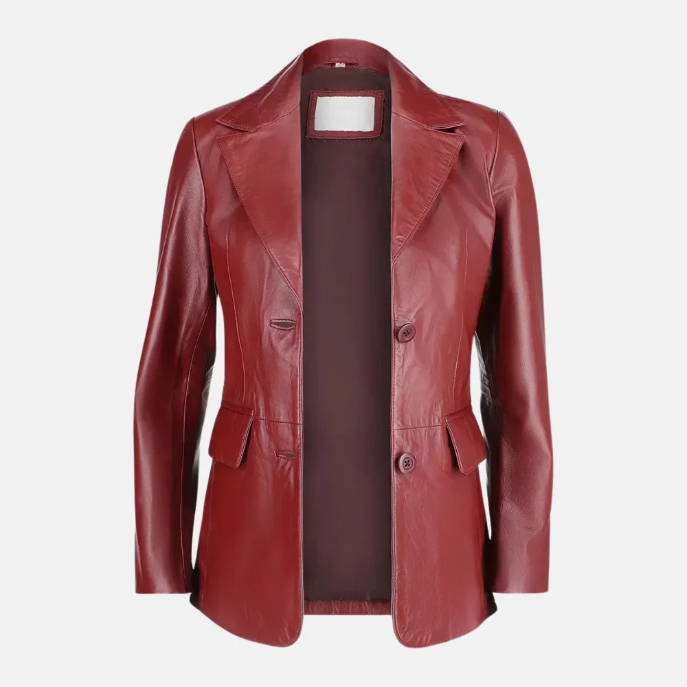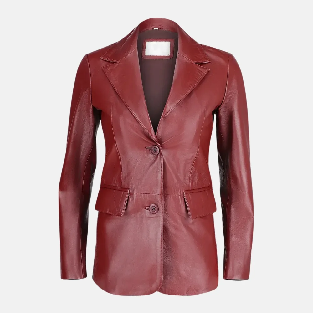 Sophia Women’s Maroon Two Button Leather Blazer Jacket with Slim Fit