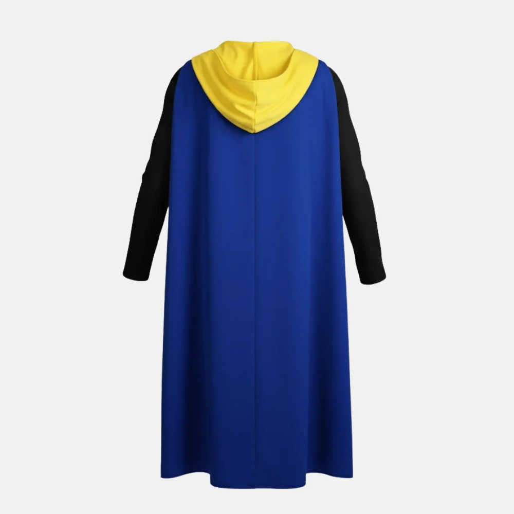 A vivid palette of black, yellow, and blue channels the electric power of Static Shock himself—bold, confident, and unforgettable. The two-tone cape adds dynamic motion and visual depth, catching light and air with every move. At its core, a striking lightning bolt emblem blazes across the chest, symbolizing courage and energy. Whether you’re heading to a cosplay convention, themed event, or photoshoot, this jacket guarantees you’ll stand out as the hero of the moment.