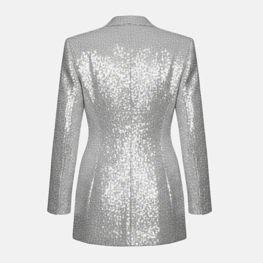 Designed for the spotlight, this silver sequin blazer transforms every entrance into a grand reveal. Its glimmering surface reflects light with every move, creating a dynamic, camera-ready sparkle worthy of the Eras stage. Made from premium sequin fabric with a smooth viscose lining, it delivers comfort without compromising its bold, luxe appeal.