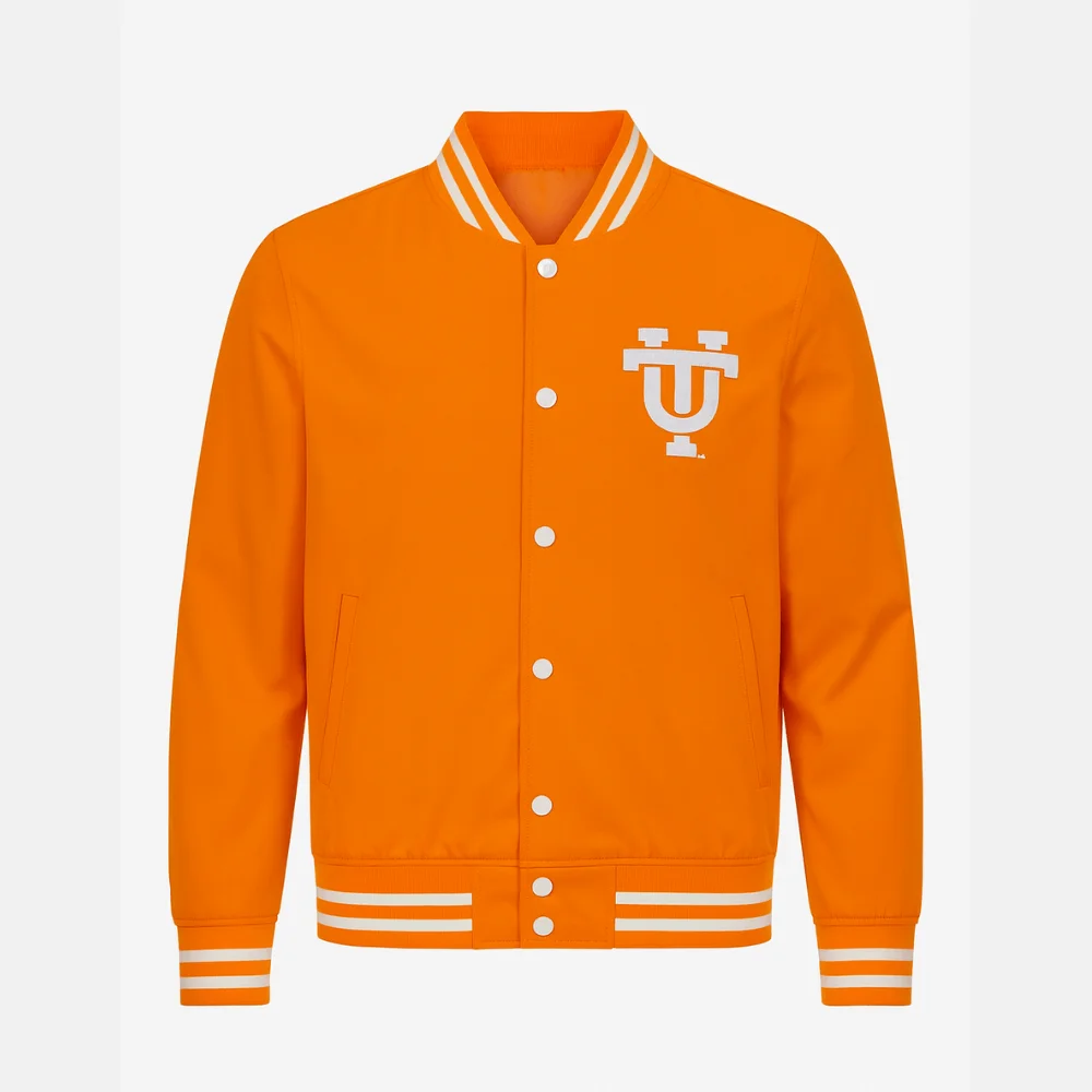 Every stitch and texture speaks to longevity — a Tennessee Bomber Jacket designed to age with character, not wear. Its rib-knit edges hold firm, ensuring you look sharp after countless wears. The orange tone is intentional — a nod to the vibrant Tennessee spirit — pairing seamlessly with neutral basics or layered streetwear fits.