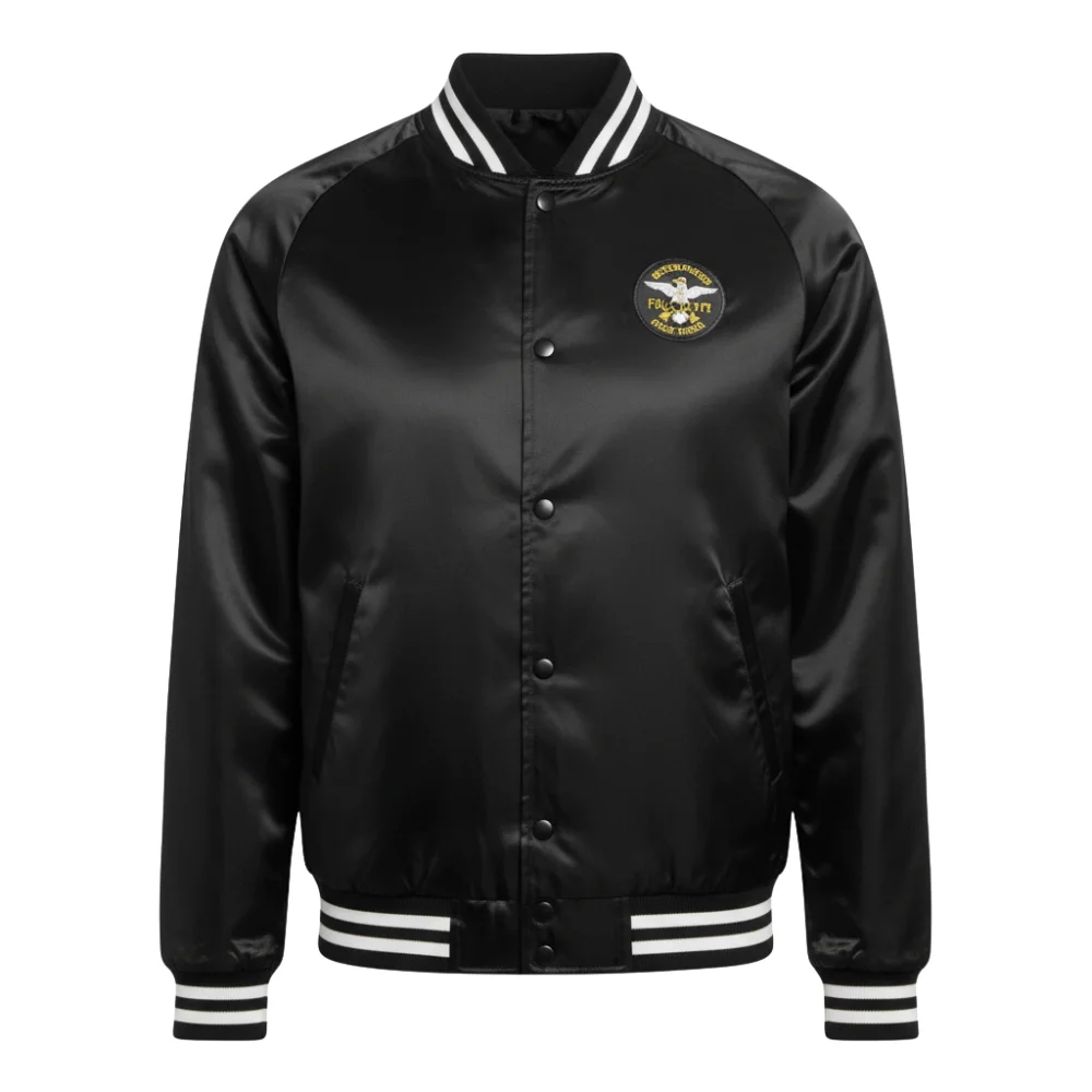 Lightweight satin keeps it breathable and sleek. The viscose lining delivers comfort from first wear to last. The snap-tab closure adds old-school varsity authenticity and easy practicality. The fit sits sharp on the body—structured, flattering, never bulky. Every design decision supports style, movement, and confidence.