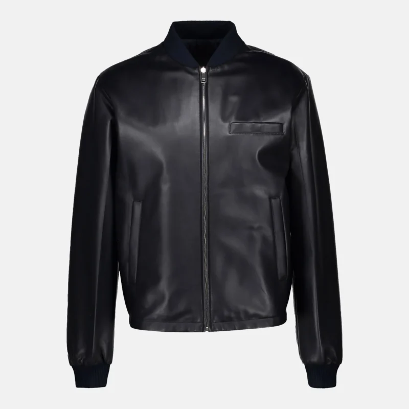 Aiden Men’s Classic Black Varsity Style Leather Bomber Jacket