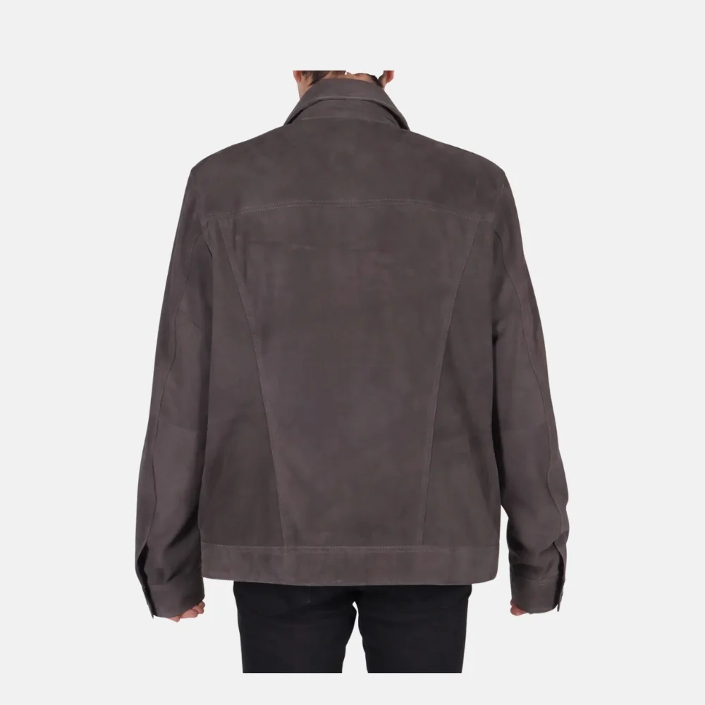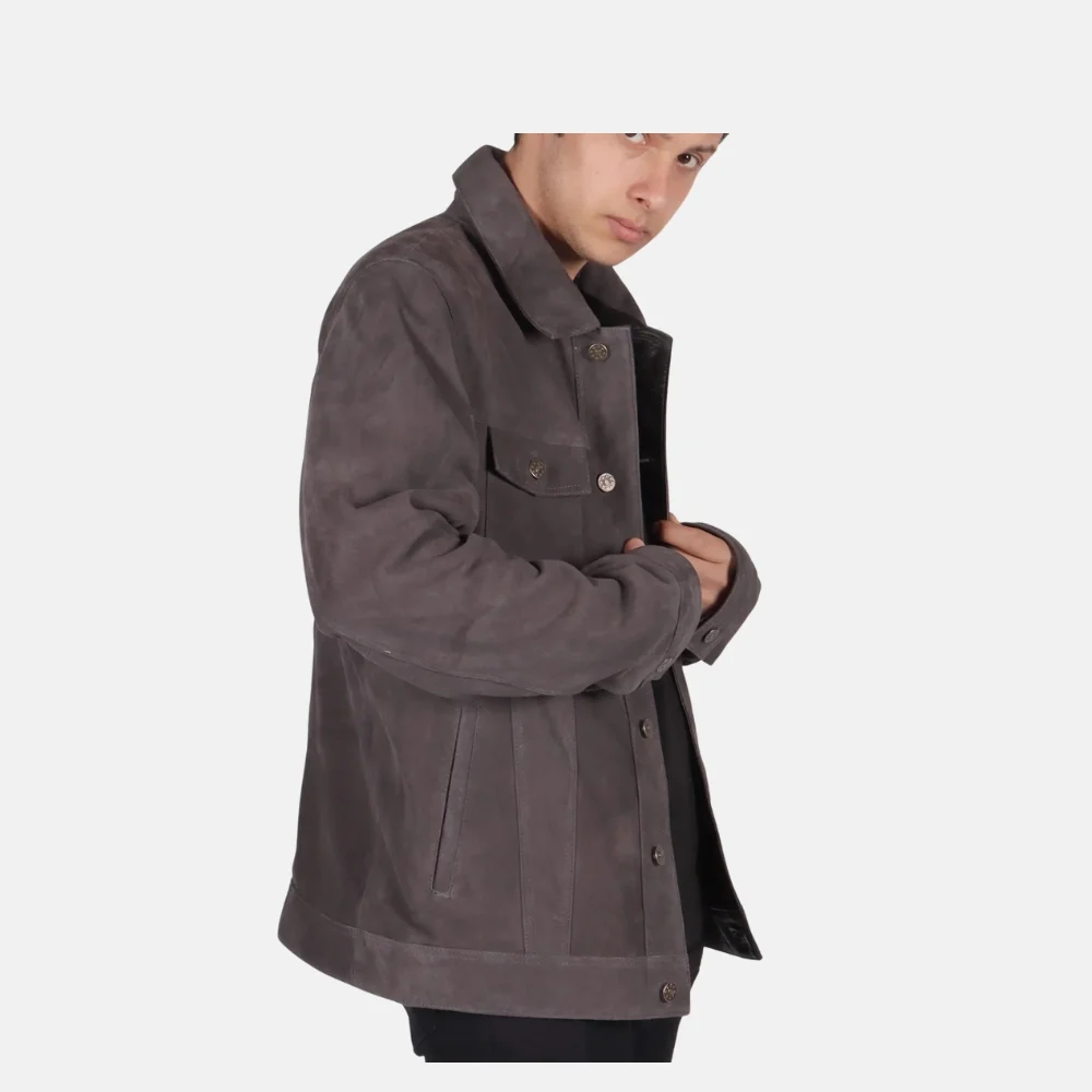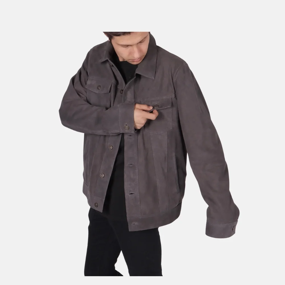 Wyatt Men’s Grey Suede Trucker Jacket with Snap Button Closure