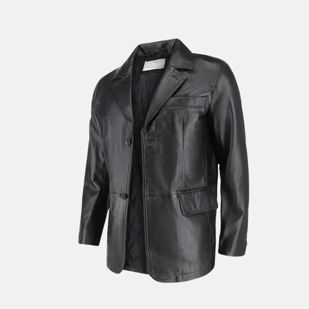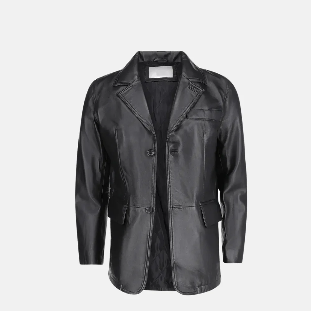 Preston Men’s Classic Brown Leather Blazer with Notch Collar